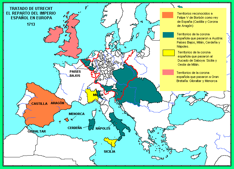La cosecha de derrotas francesas la compensaban en España la victorias del bando borbónico, quizás porque en la península todavía operaban los restos de los viejos tercios a los que ni austriacos ni ingleses lograban doblegar. Hartos todos de guerra durante dos años (1713-1715) negociaron en Utretch. Los franceses vencidos sin remisión compraron una paz ventajosa a costa de España, que entregó los territorios europeos preferentemente a holandeses y austriacos, incluido el reino de Nápoles y Sicilia, mientras los ingleses se quedaron con Gibraltar y Menorca, aunque esta última fue reconquistada por las armas españolas en 1782. Todo ello fue el pago para evitar la humillante derrota francesa y poder entregar la corona de España a la maldita dinastía de los borbones, uniendo así nuestro destino a los intereses franceses.